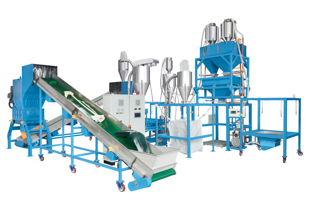 The AG System is a customized recycling line developed for the automotive industry, designed to process large plastic components such as bumpers, interior trim panels, door panels, and protective covers.